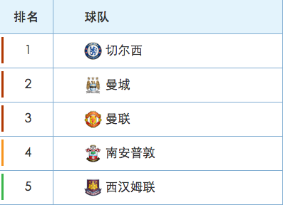 7)即时积分榜:法布雷加斯和纳斯里所在的切尔西和曼城占据积分榜前两位,范佩西带领曼联位居第三,亚历山大宋代表西汉姆联位居第五。四名前枪手不约而同的把第四留给了阿森纳。(via@飞翔的梁焯贤 )